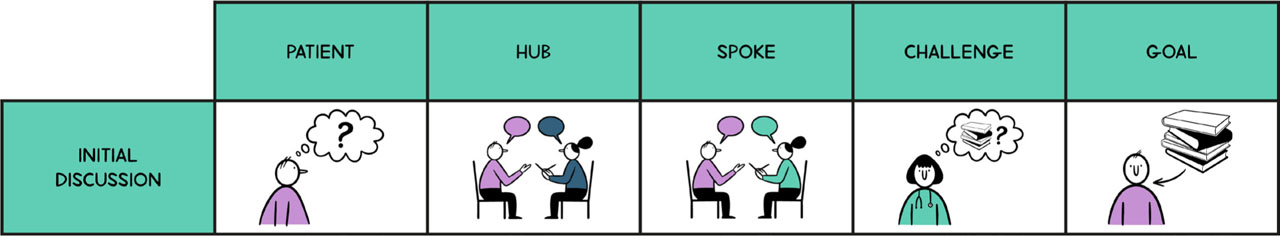 Weighing up the benefits will require support from HCPs at both hub and spoke, with the hub again taking the lead as the centre of expertise. The approach should be representative of true shared decision-making[1,17], based on structured, open and honest conversation to ensure, as far as possible, that the benefits and risks to each individual are clear. It is important that results of the discussion are shared with the spoke to ensure that HCPs at the individual's ‘home’ treatment centre are also fully aware and able to best support them. Conversations involving both hub and spoke should be considered.